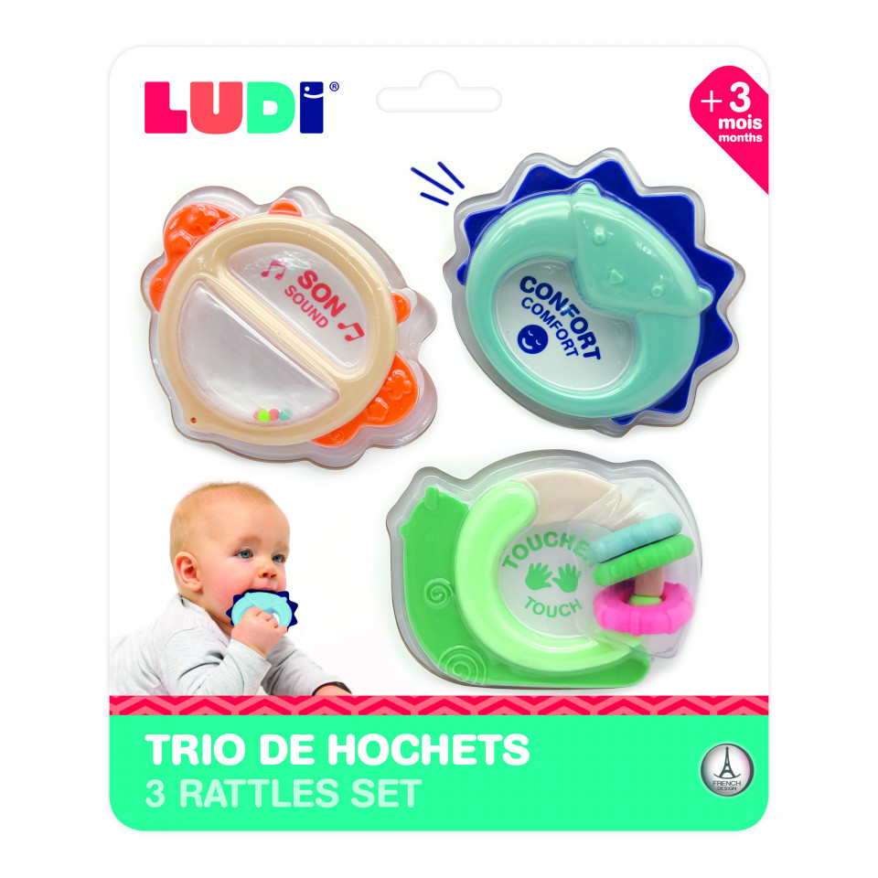 Acest mic set de 3 zornaitori este unul dintre jucariile esentiale de oferit bebelusilor pentru dezvoltarea lor motrica. Prinderea unui obiect are ca rezultat un reflex de apucare. Conceput pentru mainile mici, aceste zornaitori sunt usoare si permit o prindere foarte facila.