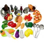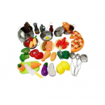 Set 36 accesorii de bucatarie pentru copii Ikonka, cu legume de taiat, oala si tigaie incluse in cutie cu maner