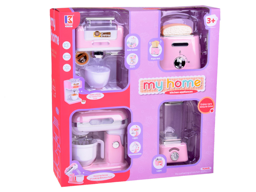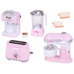 Set 4 electrocasnice mici de bucatarie pentru copii pink, cu mixer, blender, prajitor de paine, filtru de cafea