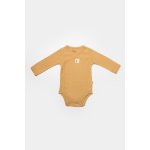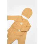 Set 4 piese body, pantaloni, baveta si caciulita Bamboo, maro, BabyCosy, 50% bumbac+50% bambus, marime 3-6 Luni