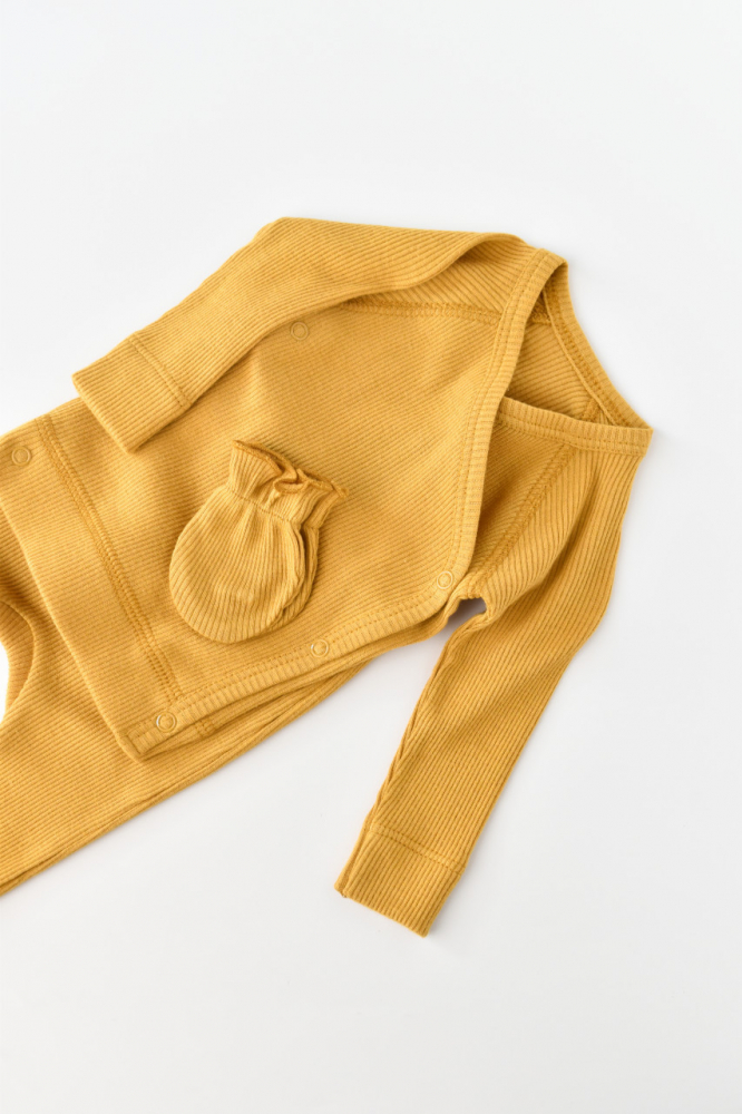 Set 4 piese din bumbac organic si modal Mustar Baby Cosy marime 0-3 luni