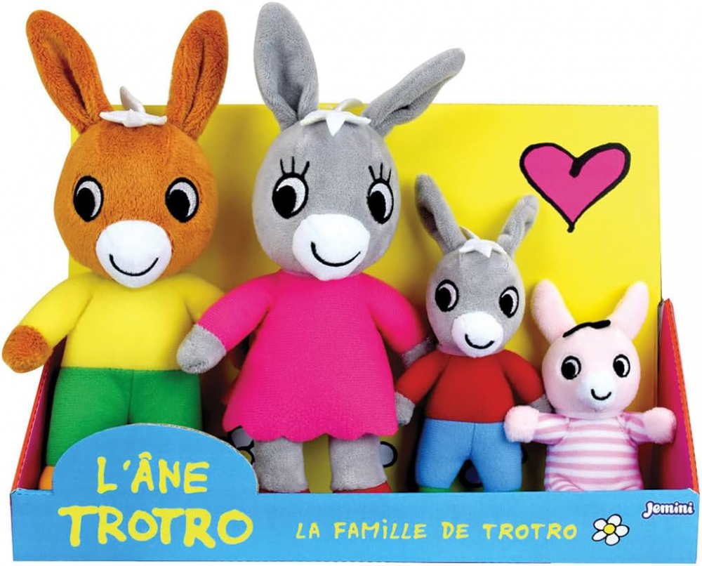 Cu ajutorul acestui set de 4 jucarii de plus, cei mici pot crea diverse povesti. Trotro este un magarus entuziast care vede mereu partea buna a lucrurilor si nu pierde nicio sansa de a se distra!
