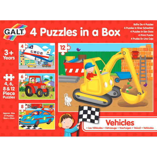 Setul de puzzle-uri Vehicule este recomandat copiilor cu varsta de peste 3 ani.