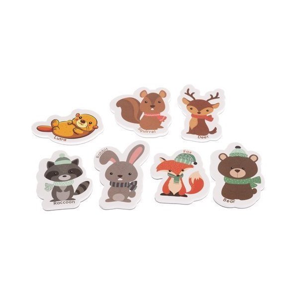 Setul contine 42 magnetei pentru frigider cu animale in cutie metalica.