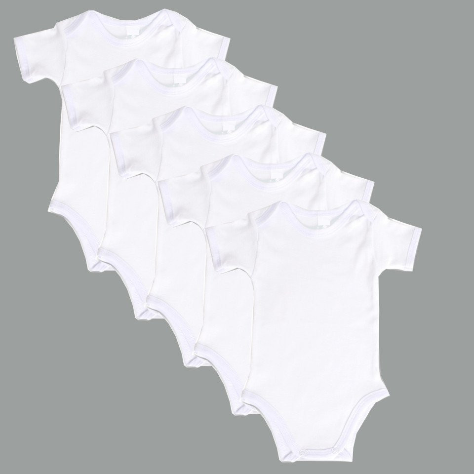 Set 5 body-uri din bumbac 100%, albe, cu maneca scurta .
