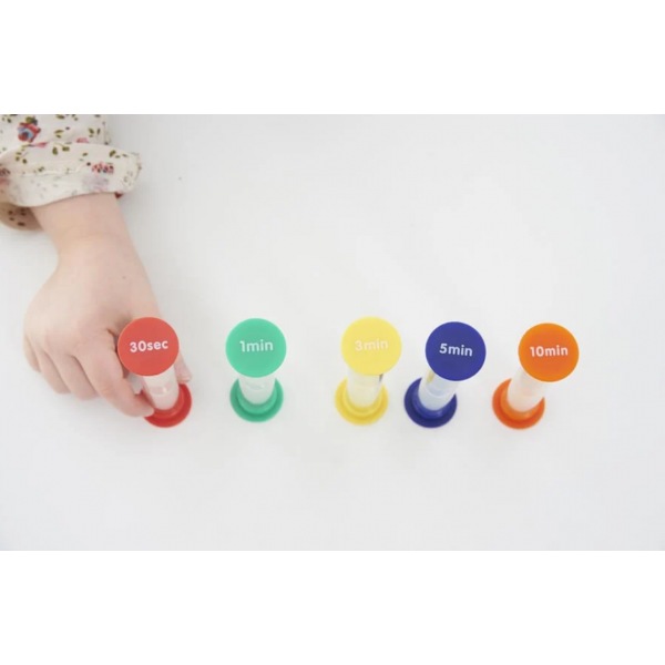 Aceste clepsidre sunt perfecte pentru jocuri senzoriale și activități de coordonare, stimulând simțul vizual și capacitatea de a înțelege conceptul de timp.