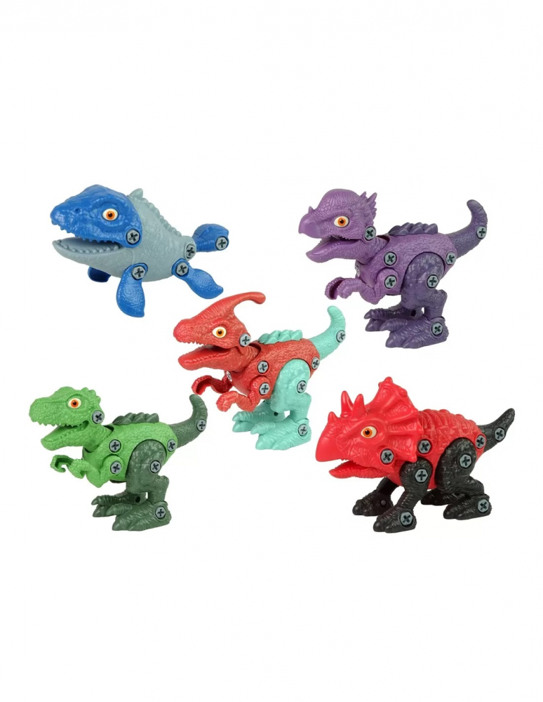 Set 5 dinozauri pentru copii, jucarii demontabile cu surubelnita, 10419