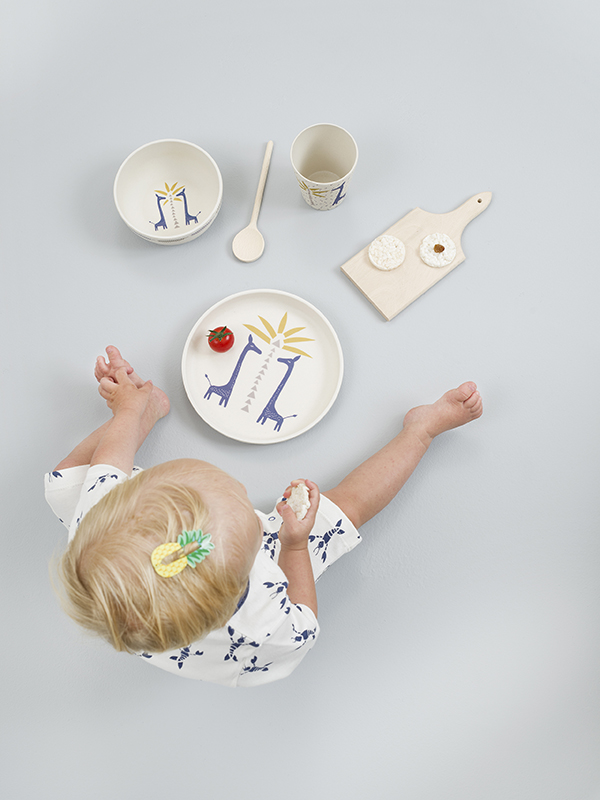 Set 5 piese pentru masa bebelusi din bambus Giraf