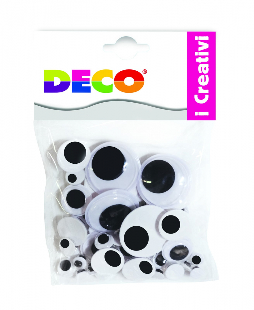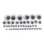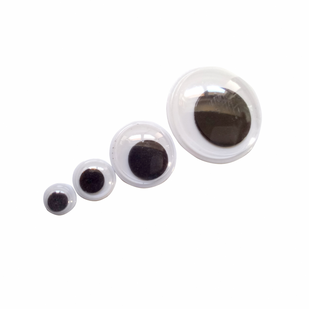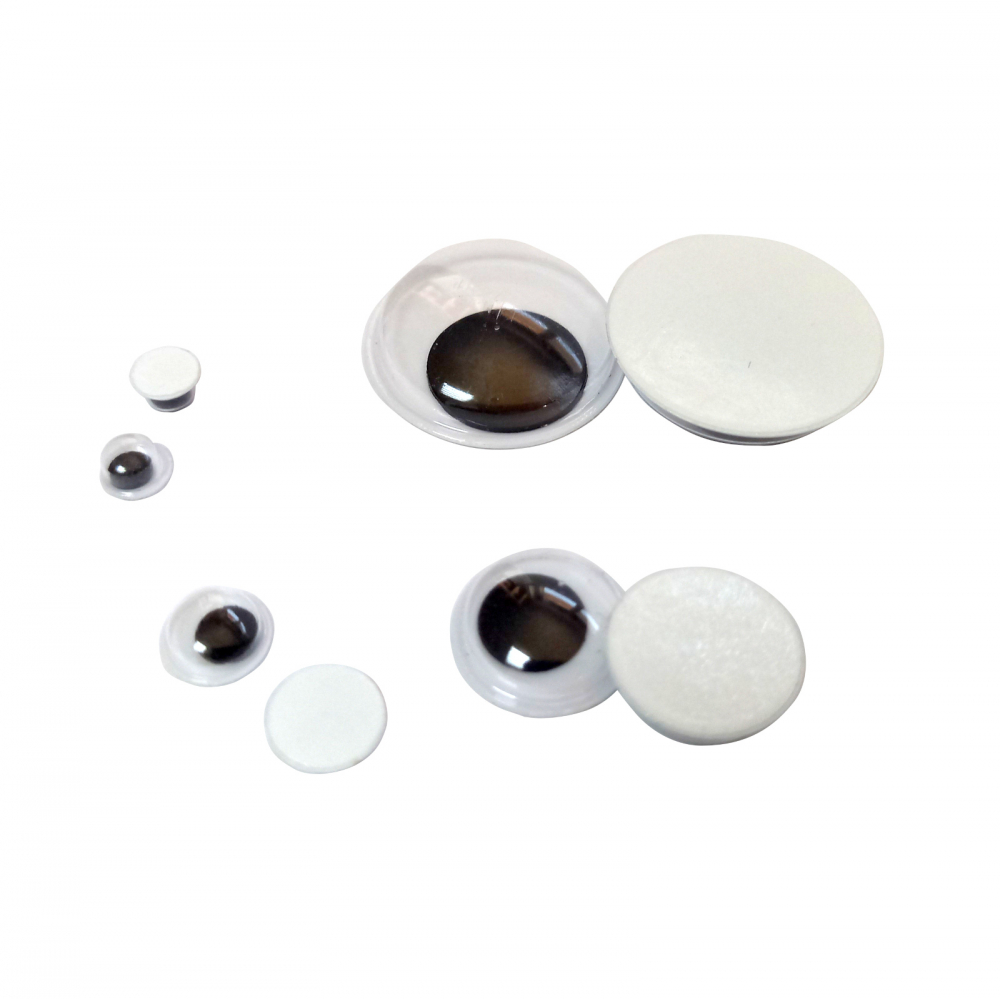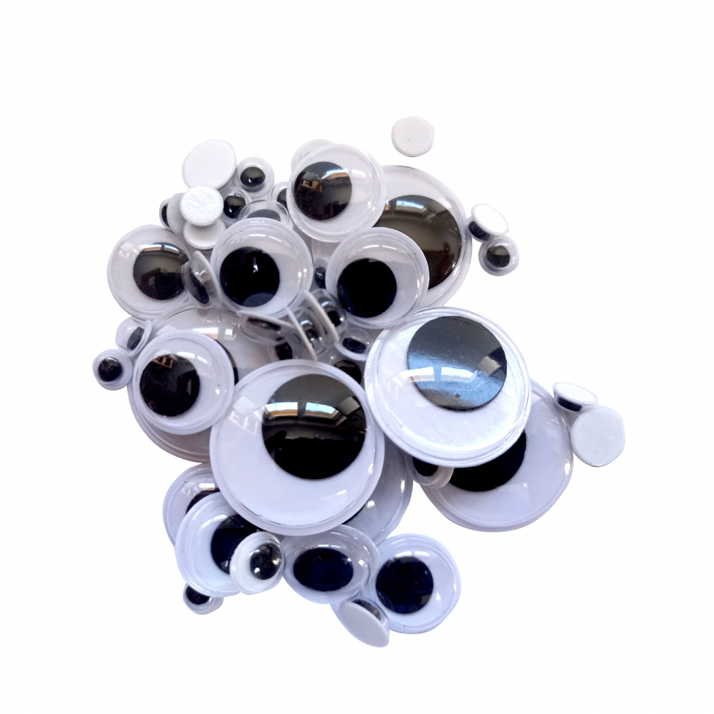 Set de 50 ochiuri neaderente alb-negru de diferite dimensiuni cu pupilă mobilă.