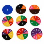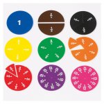 - Setul cuprinde 51 de piese din plastic dur, de dimensiuni proportionale reprezentand un intreg, jumatati, treimi, sferturi, cincimi, sesimi, optimi, zecimi si doisprezecimi, in noua culori distincte, cu imprimare pe fiecare piesa.