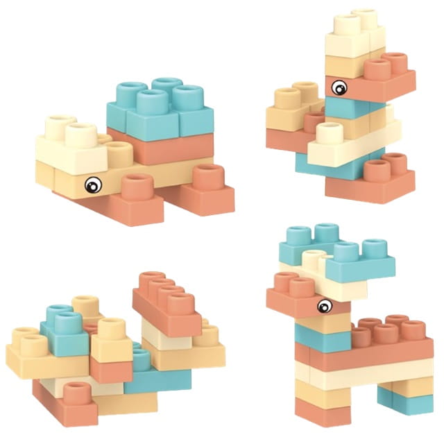 - Din blocuri, copilul va construi diverse figuri, animale si vehicule.Doar propria imaginatie ii va limita.