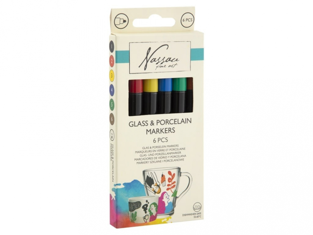 Descoperiti magia personalizarii cu setul de 6 markere Nassau Fine Art, special concepute pentru sticla si portelan!