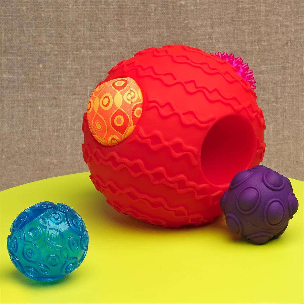 Setul contine 5 mingi mici si una mare, fiecare din ele avand culori si texturi diferite, oferind o experienta senzationala.