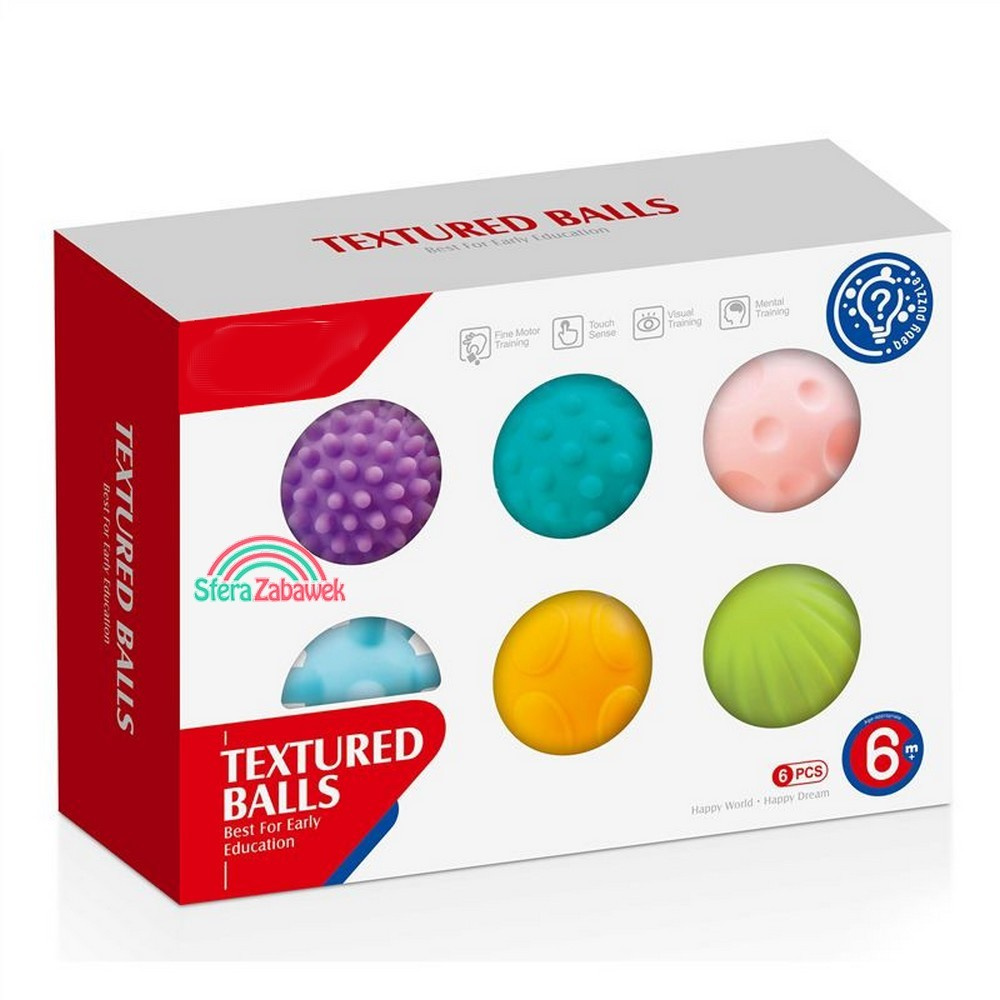 * Acest set de 6 bile senzoriale, capteaza atentia bebelusului dvs ,va fi atras de minunatele culori si de nenumaratele texturi de pe suprafata lor.