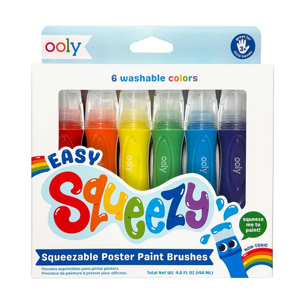 Descoperă Setul de 6 Pensule cu Vopsea pentru Postere Easy Squeezy de la OOLY, o soluție inovatoare pentru micii artiști care doresc să exploreze pictura într-un mod curat și distractiv.