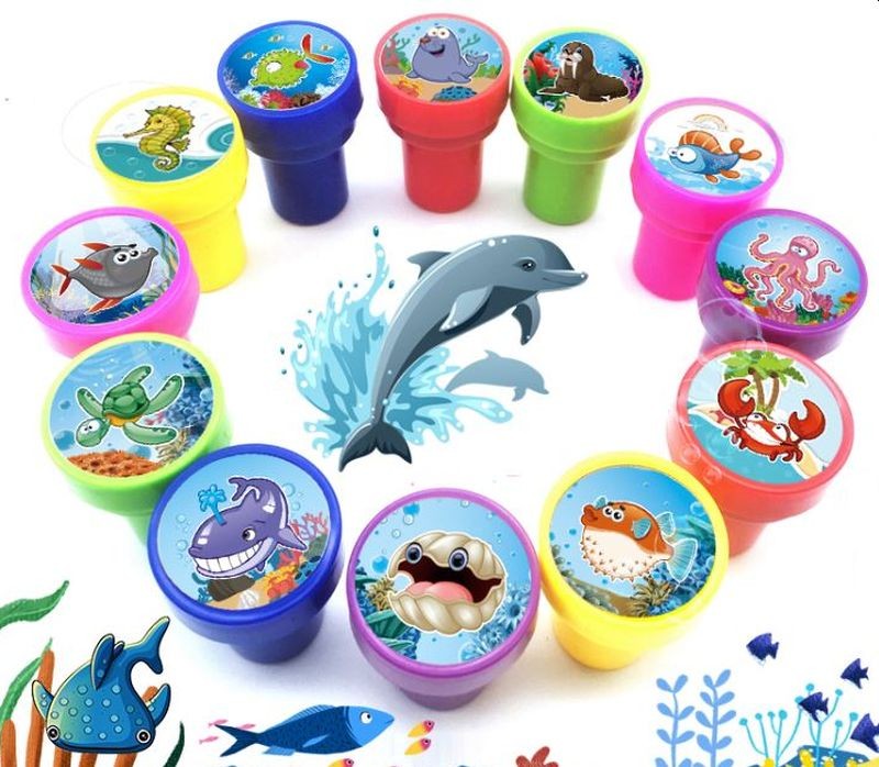 Stampilele pot fi folosite pentru decorarea caitelor, invitatiilor, felicitarilor sau multor altora. Setul este format din 60 de stampile cu modele animale marine, iar cei mici pot descoperi diferitele animalute si culorile in timp ce aplica tusul colorat pe suprafata dorita. Acstea permite copilului sa exerseze coordonarea ochi mana si abilitatile manuale.