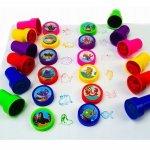 Unele articole contin coloranti care pot lasa pete in timpul activitatilor. Recomandam copiilor sa poarte salopete, sorturi de protectie pentru pictura sau haine care sa le acopere pielea, iar zona de joaca sa fie si ea protejata. Daca vopselele intra in contact cu pielea sau ochii, va rugam sa clatiti imediat cu apa rece din abundenta. Daca apar iritatii, solicitati sfatul medicului.