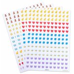 Sunt două tipuri de coli - câte 2 buc. din fiecare. Pe fiecare coală sunt 165 simbolui autoadezive.