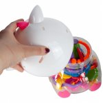 * Cutiuta in forma de vacuta, poate fi utilizata ulterior chiar si pe post de pusculita, fiind prevazuta cu spatiu pentru a introduce monede si/sau bacnote.