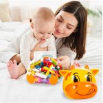 * Setul include 4 jucarii pentru dentitie, 3 zornaitori si o cutiuta decorativa in forma de vacuta vesela;