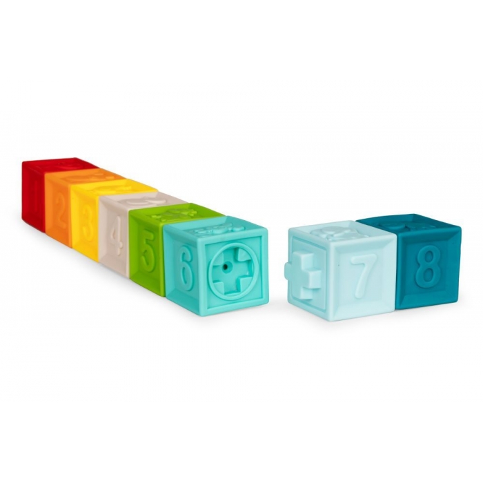 Set 8 blocurile senzoriale din cauciuc moale sunt complet sigure pentru copiii de la 6 luni.