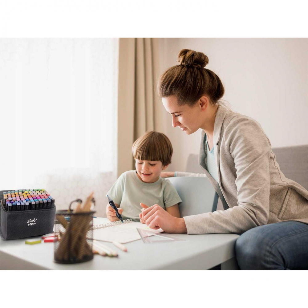 Acest set include 80 de markere cu doua varfuri.Markerele au cate 2 varfuri - Pe de o parte, au un varf rotund, care va fi perfect pentru scris sau desenat, iar pe de alta parte, au un varf inclinat, care este perfect pentru evidentierea
