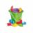 Setul de jucarii de nisip Castel contine o galeata in forma de castel pentru nisip, lopatica, grebla, sita si 5 forme de nisip