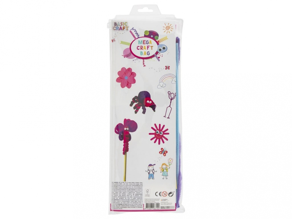 Setul include o varietate de materiale precum: Lipici, Margele, Ochisori mobili, Pompoane colorate, Bete de spuma in 5 culori, Forme din spuma, Stickere alfabet, Benzile pentru quilling, Paiete cu sclipici, Sarma plusata colorata.