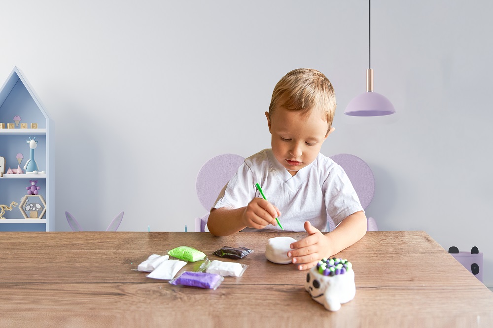 Setul include un instrument de modelare, o baza de burete pentru modelare, plastilina usoara, instructiuni convenabile si o surpriza placuta.