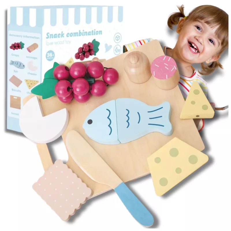 2. Peste din lemn – Un peste fermecator care poate fi taiat in doua parti, introducand copiii in lumea mancarurilor din peste.