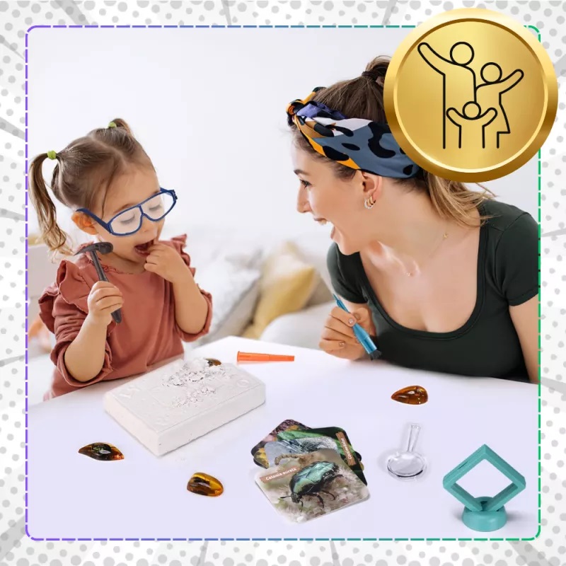 * Copilul tau va avea ocazia sa se simta ca un adevarat explorator in timp ce exploreaza fosile si descopera insecte uimitoare!