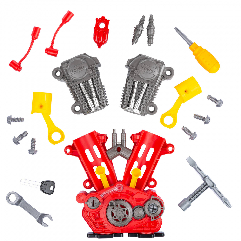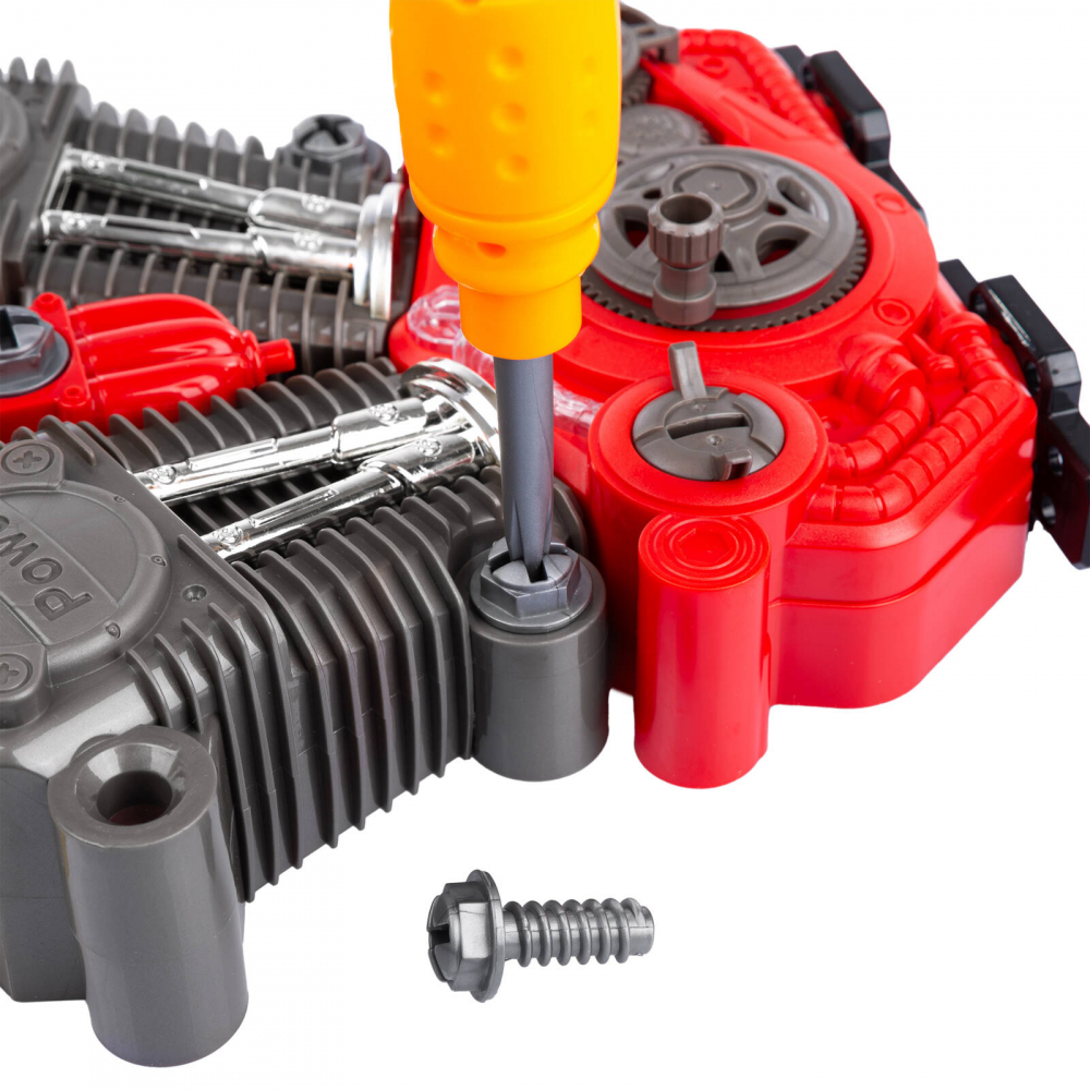* Jucaria dezvolta abilitati motorii fine, coordonare mana-ochi, imaginatie, gandire independenta si abilitati de rezolvare a problemelor. Cu un numar mare de suruburi si chei, copilul are posibilitatea de a dezvolta abilitati manuale prin desurubarea si rasucirea motorului.