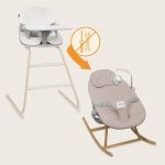 Pentru a avea copilul mereu in vedere, sezutul balansoarului poate fi montat pe cadrul scaunului, astfel incat micutul sa fie alaturi de parinti in timpul activitatilor zilnice.