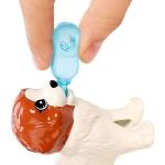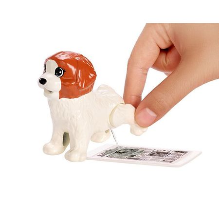 Hraneste catelusul mare, deschis la culoare, cu cele trei oase incluse iar mai apoi apasa pe coada acestuia pentru a merge la olita sau umple sticluta cu apa si ofera-i celui de-al doilea catel mare aseaza-l pe ziarul inclus si ridica-i piciorul din spate pentru a face pipi, apoi vezi pata lasata pe ziar pentru un efect super amuzant
