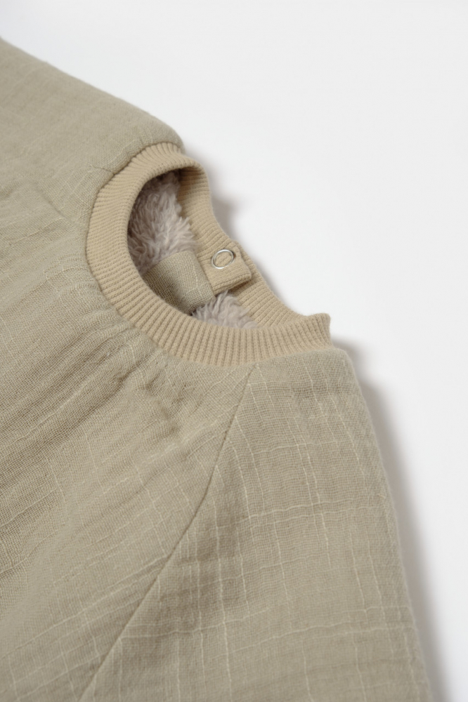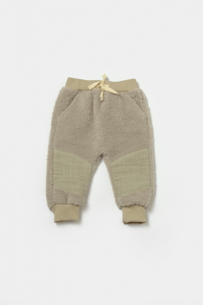 1. Pantalonasi din 100% bumbac - muselina dublat cu blanita delicata cu pielea gingasa a a bebelusului. Acestia au talia elastica si foarte confortabila. Sunt prevazuti cu un snur decorativ decorativi. Au 2 buzunare si masete in partea de jos.