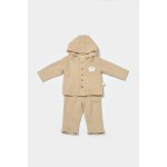 Set bluza cu gluga si pantaloni Winter muselin 100% bumbac Apricot BabyCosy 18-24 Luni
