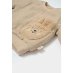 Set bluza dublata si pantaloni Ursulet Winter muselin 100% bumbac Apricot BabyCosy 12-18 Luni