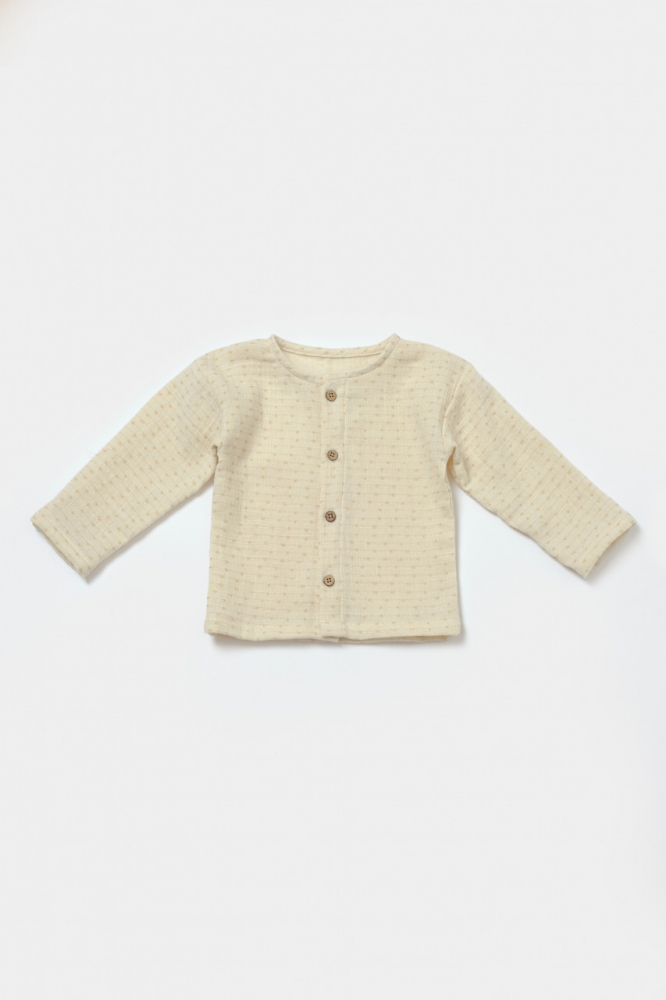2. Bluza cu maneci lungi, din 100% bumbac - muselina. Aceasta se inchide cu nasturei,