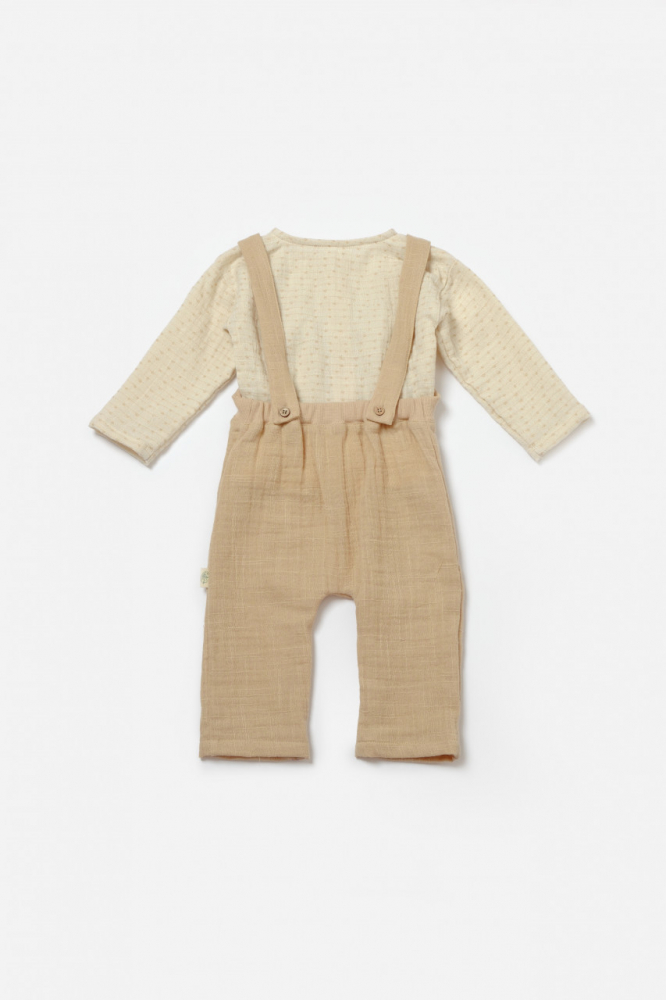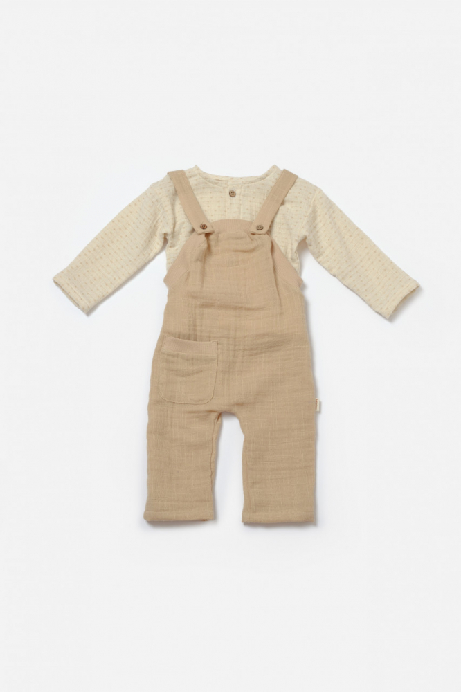 Set bluza si salopeta Winter BabyCosy muselin 100% bumbac Apricot 6-9 luni