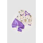 Set bluzita cu maneca lunga si panataloni lungi bumbac organic Mov 18-24 Luni