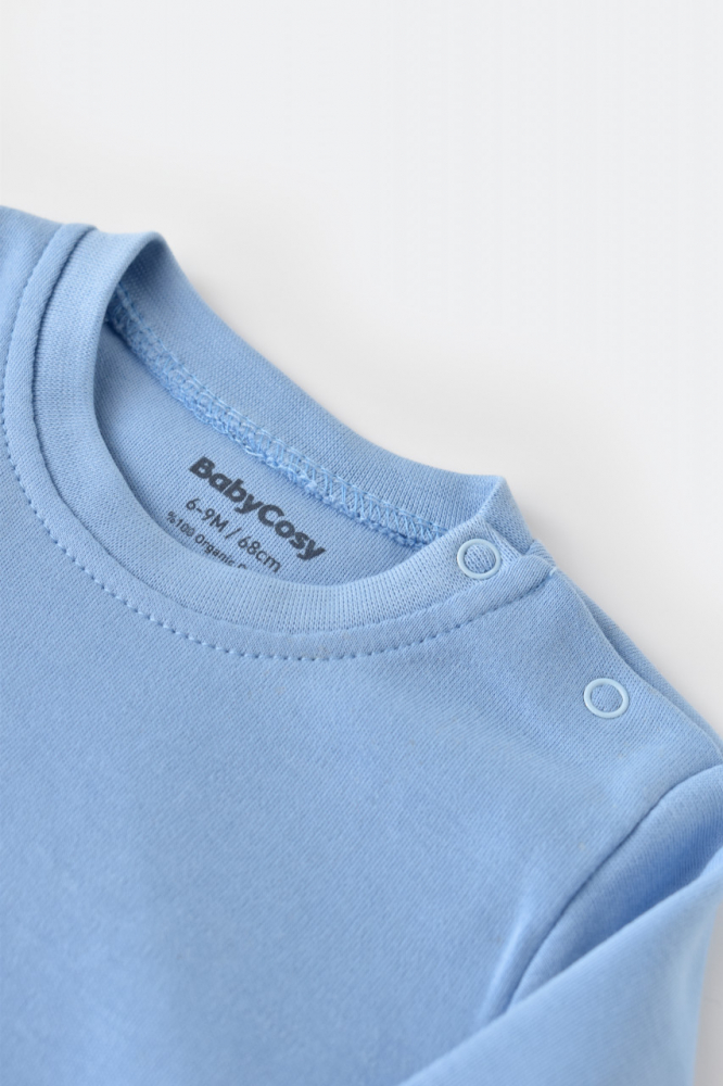 Set bluzita cu maneca lunga si panataloni lungi Bleu Baby Cosy marime 12-18 luni