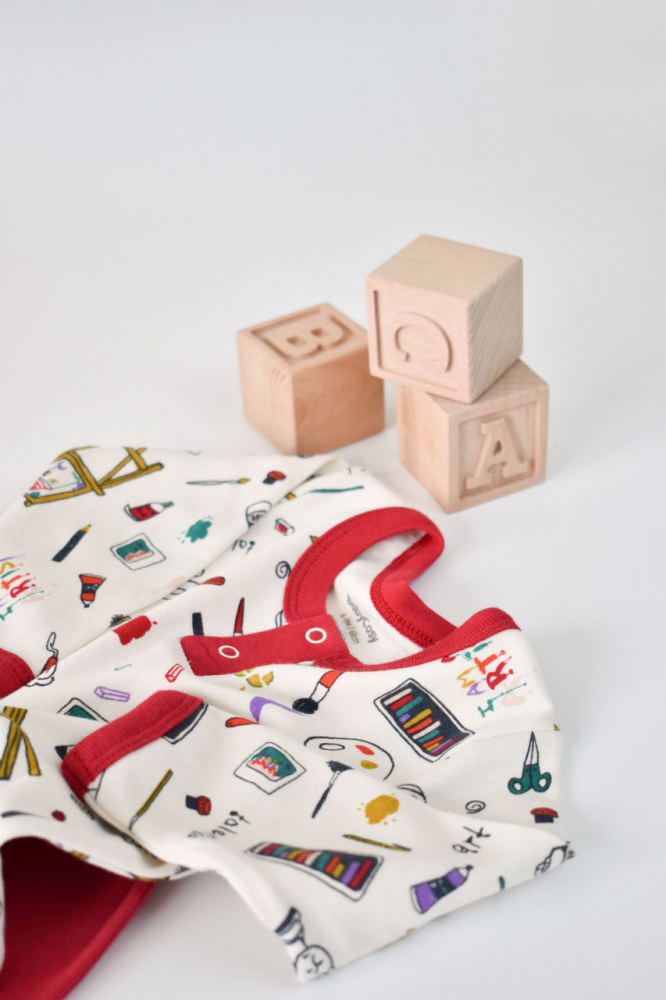 - Este realizat din 100% bumbac organic, delicat cu pielea gingasa a a bebelusului. Printurile sunt cu vopseluri pe baza de apa si toate produsele sunt in concordanta cu standardele GOTS.