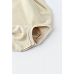 - Este realizat din bumbac organic 100%, delicat cu pielea gingasa a a bebelusului. Printurile sunt cu vopseluri pe baza de apa si toate produsele sunt in concordanta cu standardele GOTS.