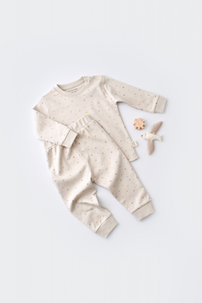 Set bluzita cu maneca lunga si panataloni lungi Crem cu buline Baby Cosy marime 18-24 luni