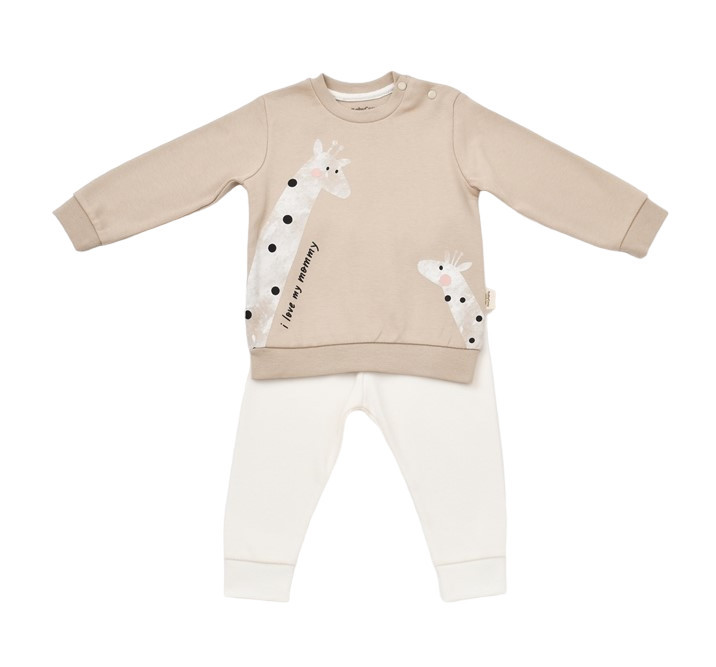 Setul Girafa cu bluzita cu maneca lunga si panataloni lungi este perfect pentru orice anotimp. Acest model este potrivit atat pentru fetite, cat si pentru baieti.