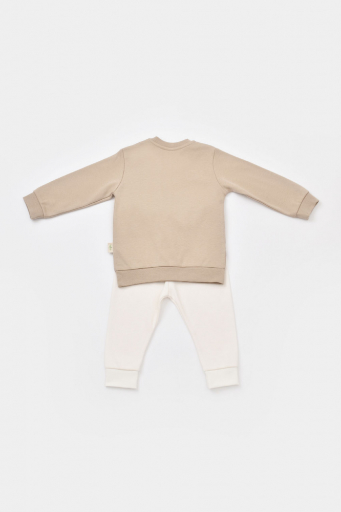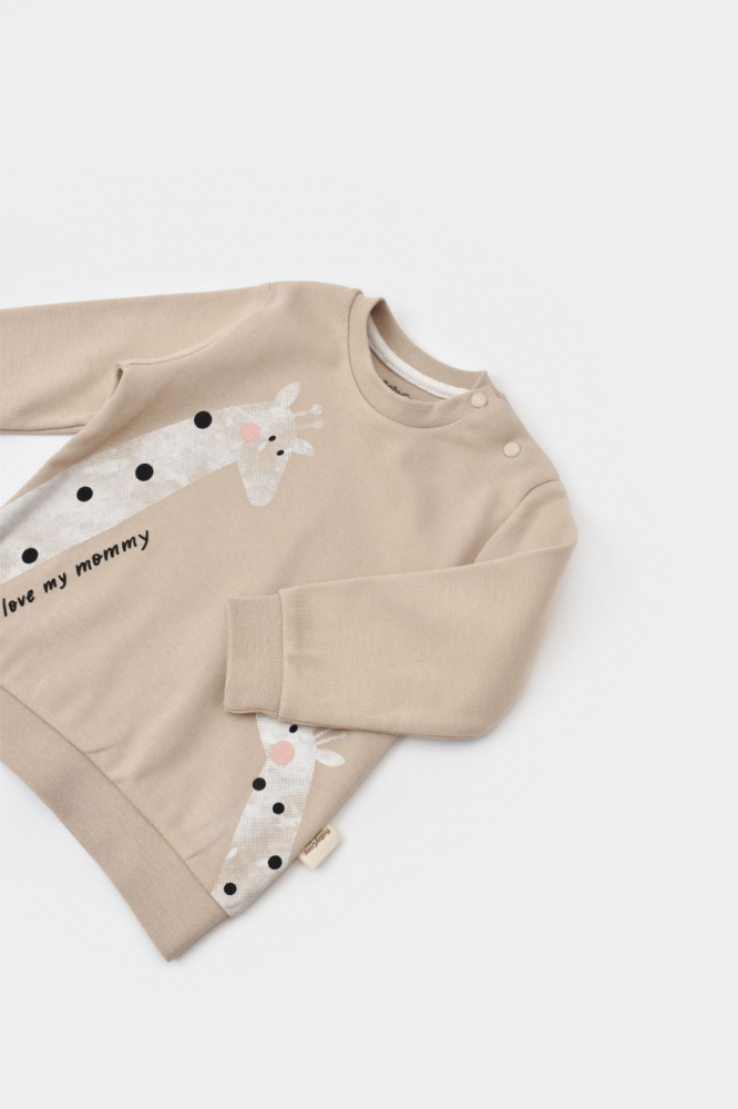 Set bluzita cu maneca lunga si panataloni lungi cu buline Girafa bumbac organic Mink 12-18 Luni