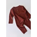 Set bluzita cu maneca lunga si panataloni lungi din bumbac organic si modal caramiziu Marime 12-18 luni