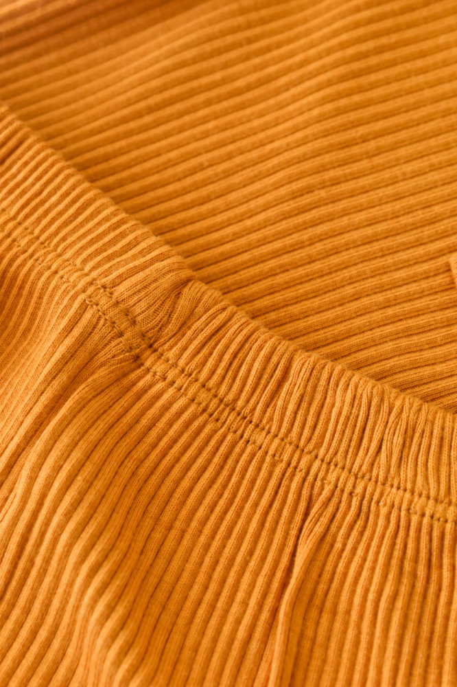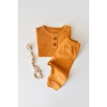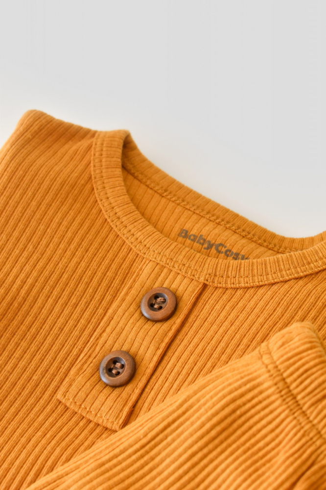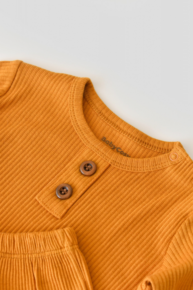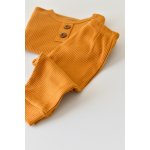 Set bluzita cu maneca lunga si panataloni lungi din bumbac organic si modal mustar marime 3-6 luni