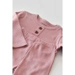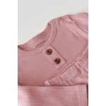 Set bluzita cu maneca lunga si panataloni lungi din bumbac organic si modal roz marime 18-24 luni