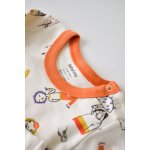 - Este realizat din 100% bumbac organic, delicat cu pielea gingasa a a bebelusului. Printurile sunt cu vopseluri pe baza de apa si toate produsele sunt in concordanta cu standardele GOTS.